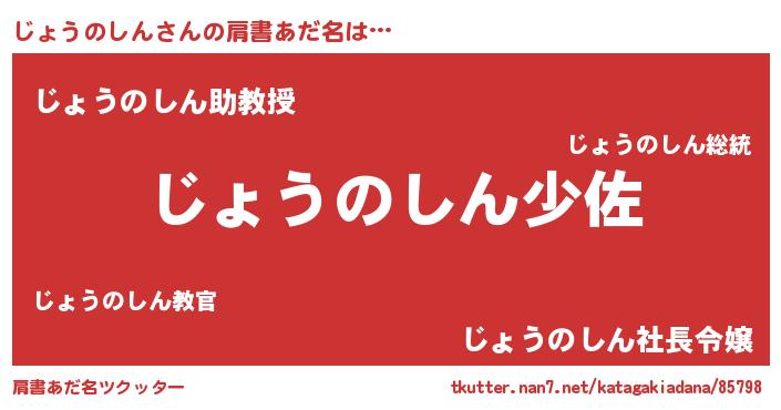 | 男性向けラノベタイトル風あだ名 | 『ジョウノシンスレイヤー』 |