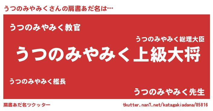 | ヒーロー風カッコイイあだ名 | 『仮面ウツダー』『ネオウツノミヤミク』 |