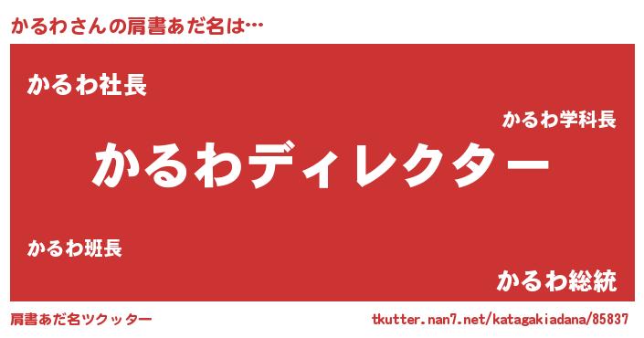 | 意味不明あだ名 | 『ペロリンかるわ』『自称かるわ』 |