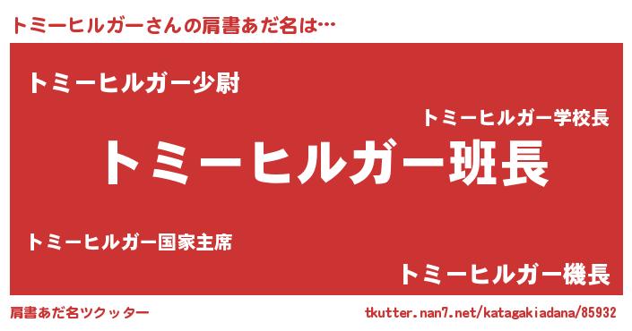| 意味不明あだ名 | 『とにかく怪しいトミーヒルガー』 |