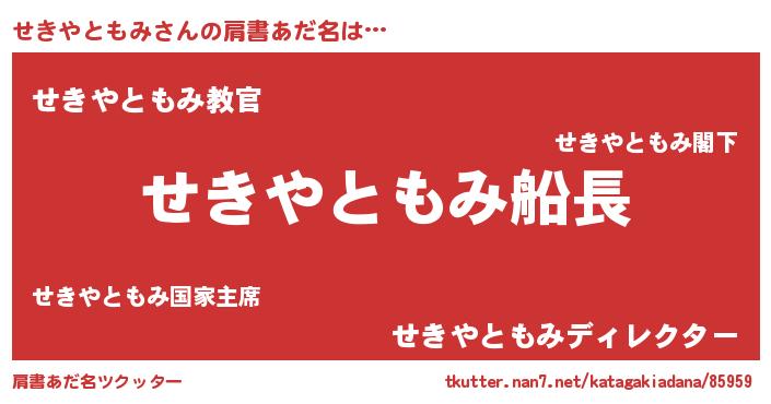 | 意味不明あだ名 | 『住所不定無職せきやともみ(3歳)』 |