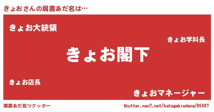 | 意味不明あだ名 | 『自称きょお』『きょおフォーエバー』 |