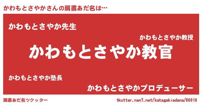 | 男性向けラノベタイトル風あだ名 | 『この素晴らしい世界にかわもとさやかを!』 |