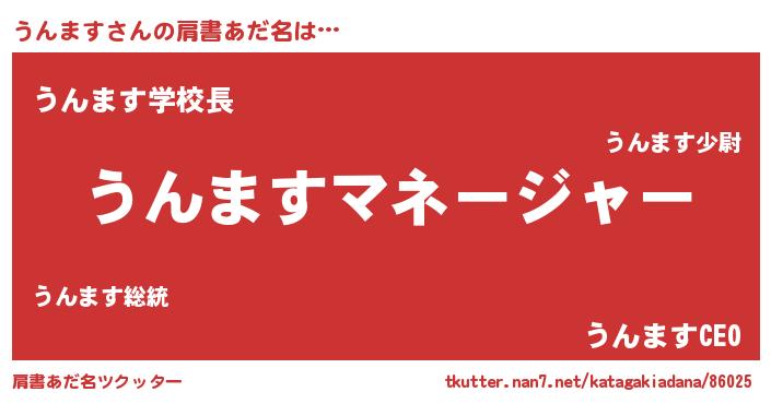 | 男性向けラノベタイトル風あだ名 | 『はたらくうんますさま!』 |