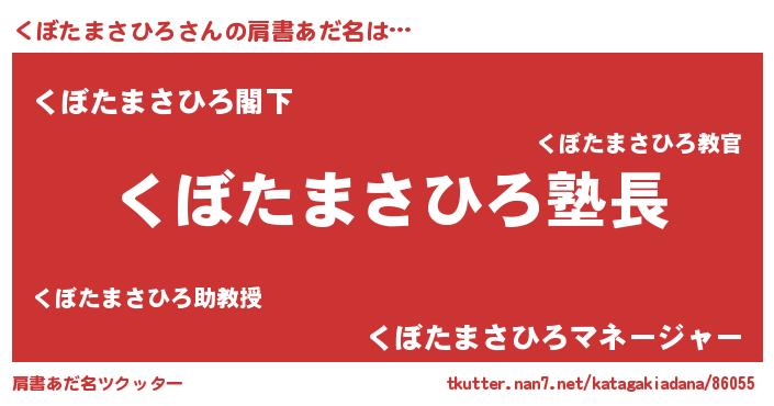 | 意味不明あだ名 | 『とにかく怪しいくぼたまさひろ』 |