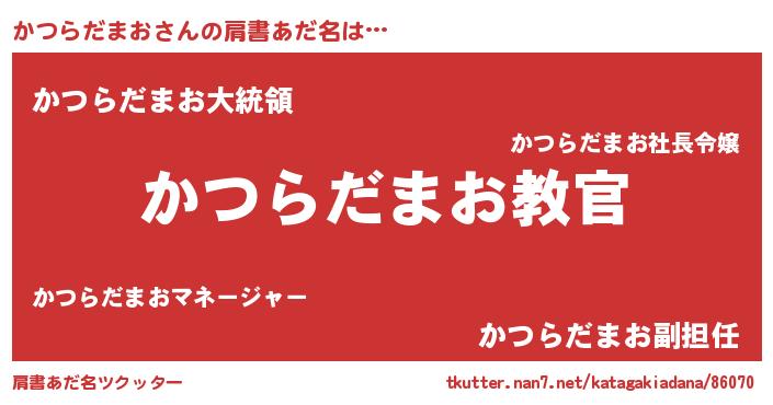 | 男性向けラノベタイトル風あだ名 | 『この素晴らしい世界にかつらだまおを!』 |