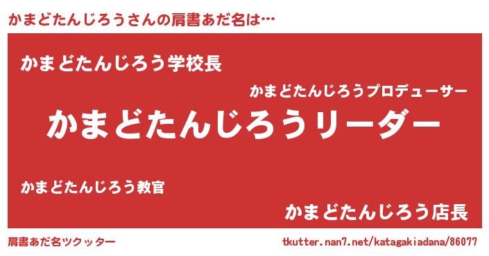 | 男性向けラノベタイトル風あだ名 | 『かまどたんじろうの嫁は女の子じゃないと思った?』 |