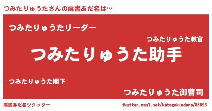 | ポケモン風あだ名 | 『ツックウザ』『ヒツミタリュウタ』 |