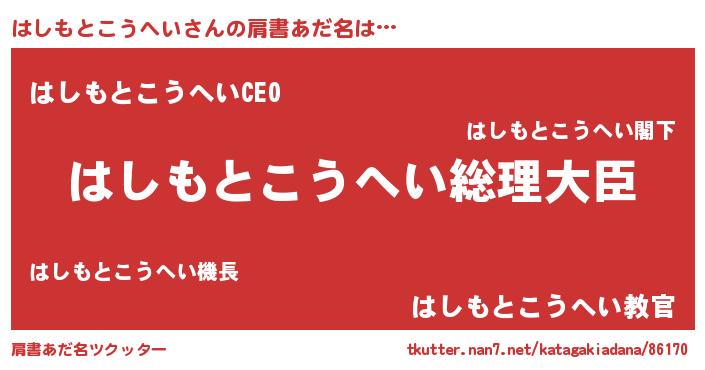 | 欧米人風あだ名 | 『はしもとこうへいクリステル』 |