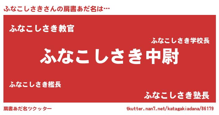 | 男性向けラノベタイトル風あだ名 | 『ふなこしさき~年齢イコール彼女いない歴の魔法使い~』 |