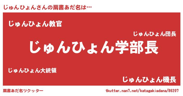 | ヘコむあだ名 | 『じゅぷりん』『豆乳』『じゅにー』 |