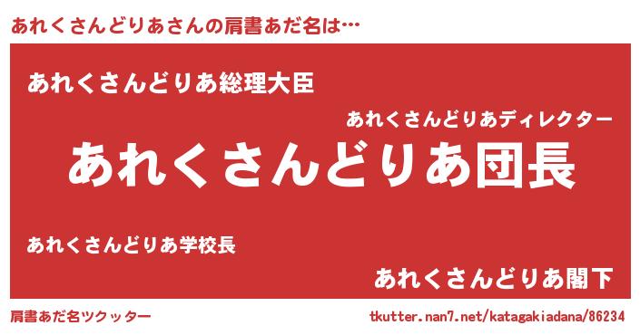 | 意味不明あだ名 | 『とにかく怪しいあれくさんどりあ』 |