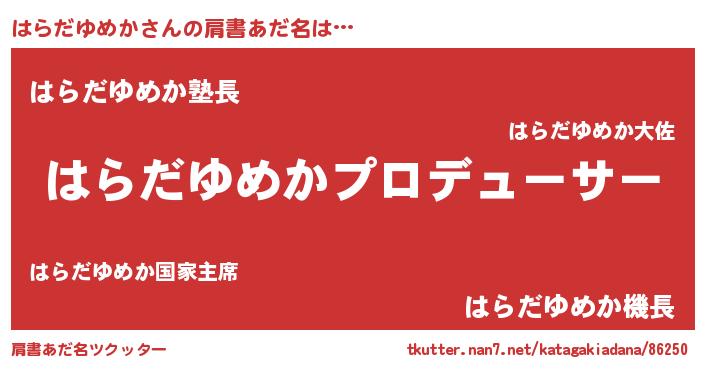 | ポケモン風あだ名 | 『ハラゴンZ』『ヒハラダユメカ』 |