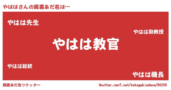 | 意味不明あだ名 | 『住所不定無職やはは(98歳)』『自称やはは』 |