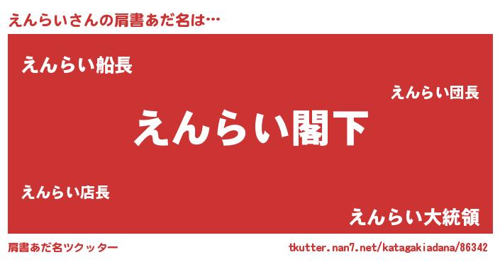| 男性向けラノベタイトル風あだ名 | 『Re:えんらいから始める異世界生活』 |