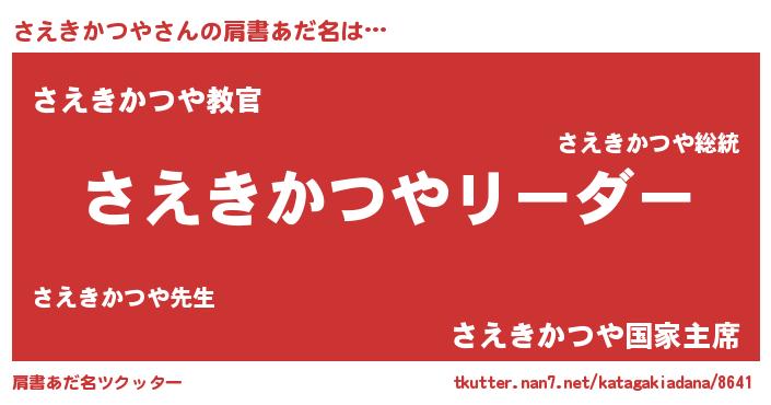 | 女子向けラノベタイトル風あだ名 | 『さえきかつや様がみてる』 |