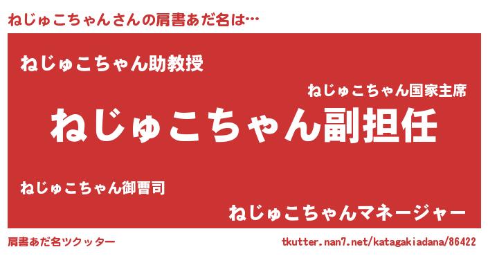 | 男性向けラノベタイトル風あだ名 | 『ねじゅこちゃんという概念が存在しない退屈な世界 』 |