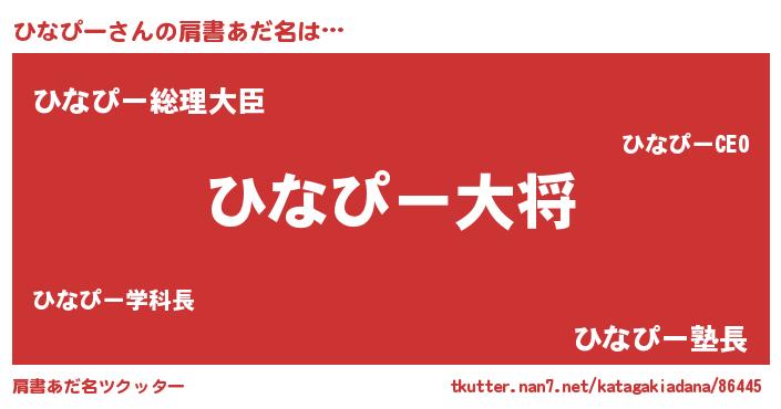 | 男性向けラノベタイトル風あだ名 | 『ヒナピースレイヤー』『ひなぴーの憂鬱』 |