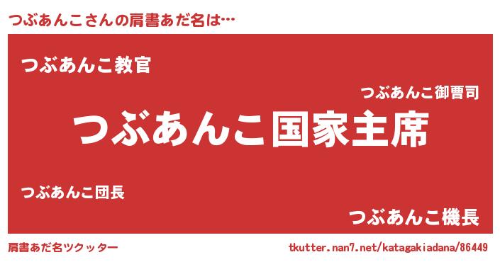 | 女子向けラノベタイトル風あだ名 | 『つぶあんこの雑貨屋さん』 |