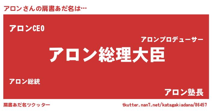 | 女子向けラノベタイトル風あだ名 | 『アロンの婚約者』『アロンは平凡を望む』 |