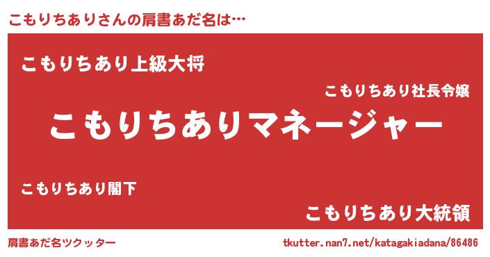 | 男性向けラノベタイトル風あだ名 | 『はたらくこもりちありさま!』 |