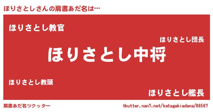 | 男性向けラノベタイトル風あだ名 | 『ほりさとし~年齢イコール彼女いない歴の魔法使い~』 |