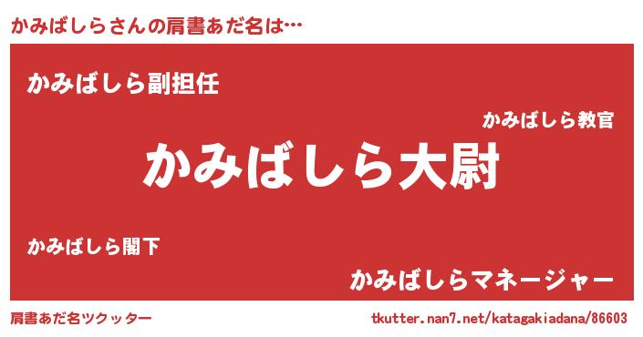 | 男性向けラノベタイトル風あだ名 | 『かみばしら~年齢イコール彼女いない歴の魔法使い~』 |