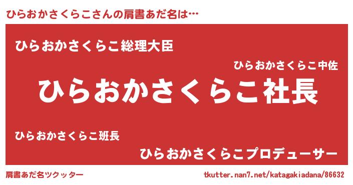 | 恥ずかしいあだ名 | 『プリティーひらおかさくらこ』 |