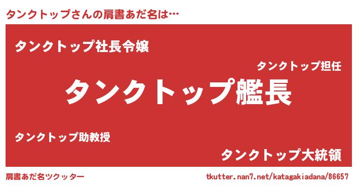 | 男性向けラノベタイトル風あだ名 | 『緋弾のタンクトップ』 |