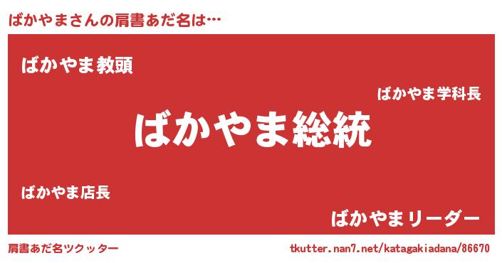 | 意味不明あだ名 | 『自称ばかやま』『永久保存ばかやま』 |
