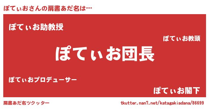 | ヒーロー風カッコイイあだ名 | 『黄金騎士ポテ』『慈愛の使者ぽてぃお』 |