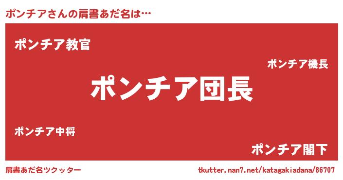 | 女子向けラノベタイトル風あだ名 | 『ポンチアは平凡を望む』 |