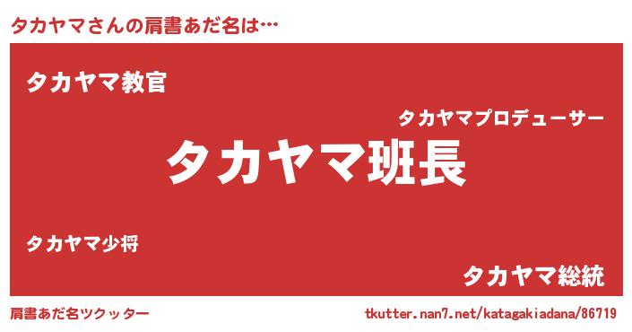 | 女子向けラノベタイトル風あだ名 | 『タカヤマ様がみてる』 |