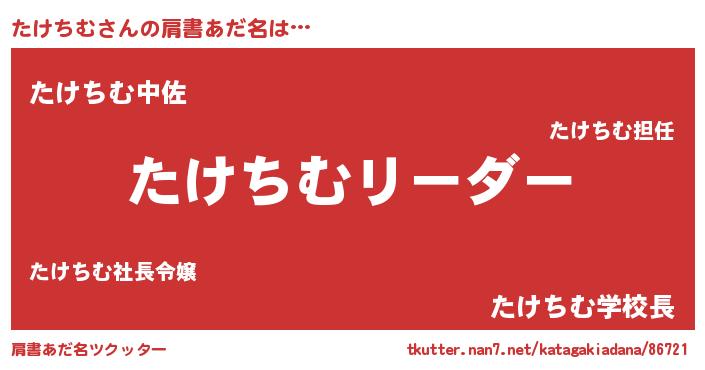 | ヘコむあだ名 | 『たけっちょ』『たけちむ(小並感)』 |