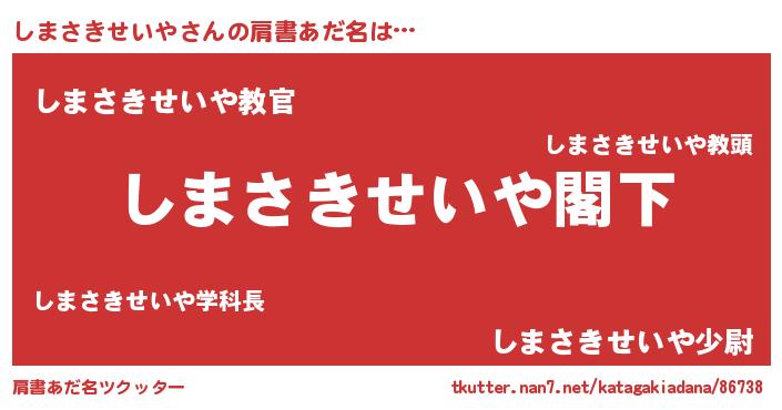 | 意味不明あだ名 | 『自称しまさきせいや』 |