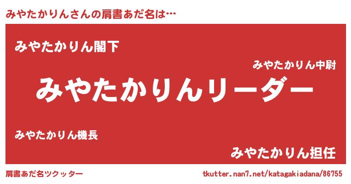 | ポケモン風あだ名 | 『ヒミヤタカリン』『ミヤセウス』 |