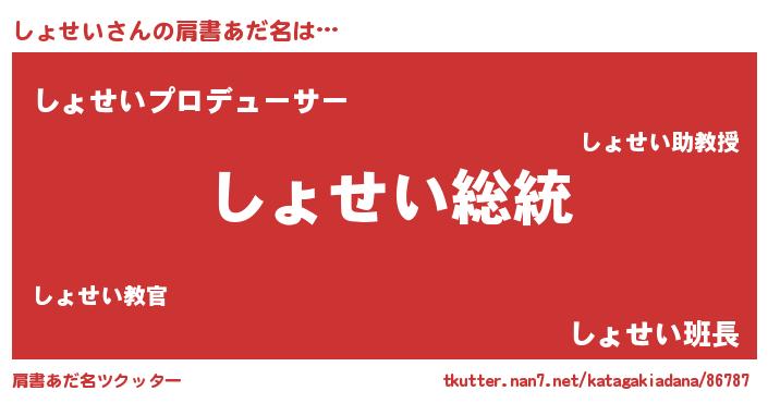 | 意味不明あだ名 | 『自称しょせい』『永久保存しょせい』 |