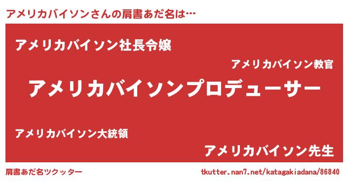 | ヒーロー風カッコイイあだ名 | 『スーパーアメリカバイソン』 |