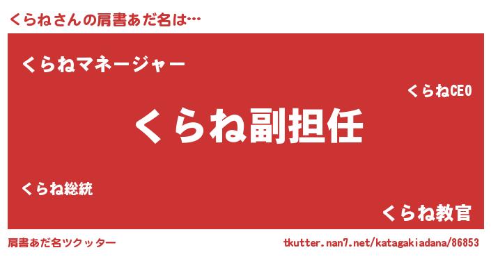 | ヘコむあだ名 | 『くらね(震え声)』『くらふぇ~』 |