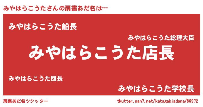 | 男性向けラノベタイトル風あだ名 | 『みやはらこうたの憂鬱』 |