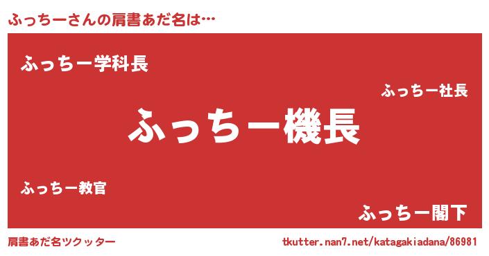 | 男性向けラノベタイトル風あだ名 | 『緋弾のフッチー』『ふっちーの憂鬱』 |