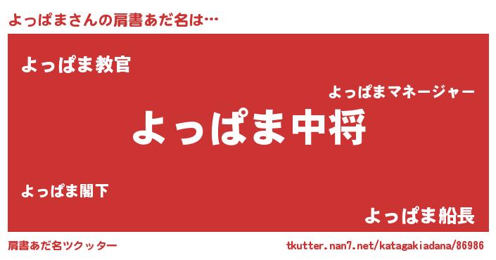 | ヒーロー風カッコイイあだ名 | 『仮面ヨッダー』『最強戦士ヨッパマ』 |