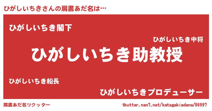 | 男性向けラノベタイトル風あだ名 | 『ノーゲーム・ノーヒガシイチキ』 |