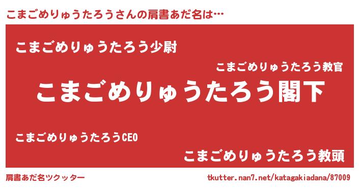 | 意味不明あだ名 | 『自称こまごめりゅうたろう』 |