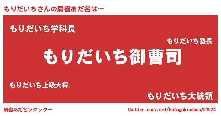 | 男性向けラノベタイトル風あだ名 | 『もりだいちの憂鬱』 |