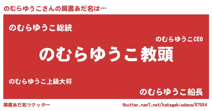 | 男性向けラノベタイトル風あだ名 | 『のむらゆうこという概念が存在しない退屈な世界 』 |