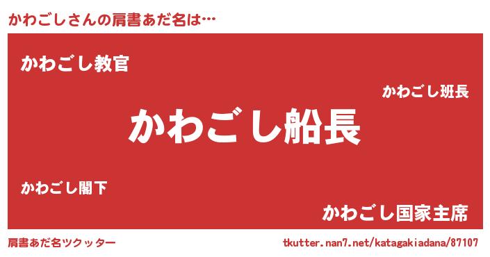 | 意味不明あだ名 | 『住所不定無職かわごし(11歳)』 |