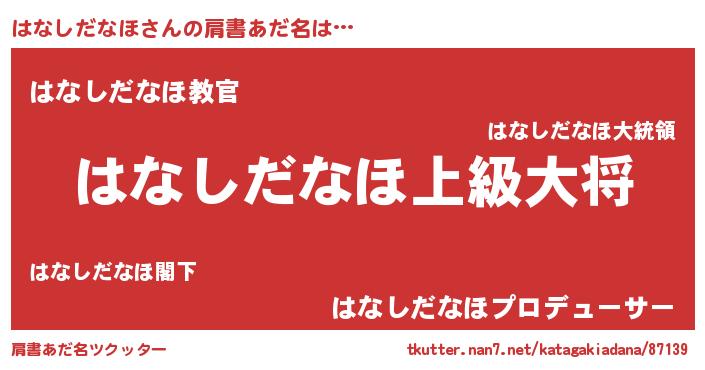 | ヒーロー風カッコイイあだ名 | 『仮面ハナダー』『ネオハナシダナホ』 |