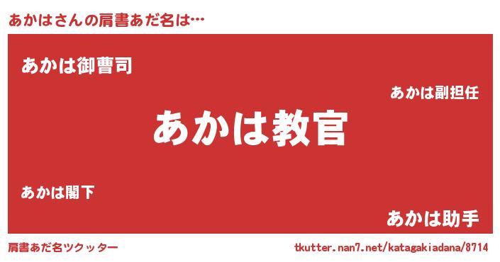 | 男性向けラノベタイトル風あだ名 | 『魔弾の王とあかは』『あかはの憂鬱』 |