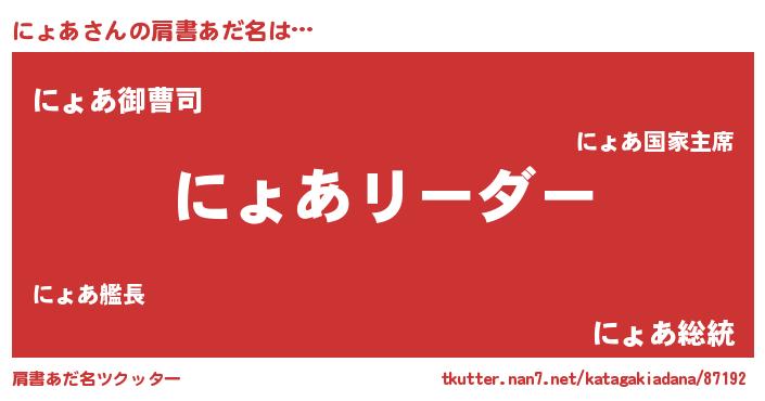| 意味不明あだ名 | 『とにかく怪しいにょあ』『自称にょあ』 |